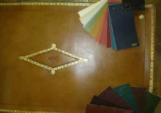 Fourniture et pose de cuir en mouton ou en vachette pour bureau plat ou secrétaire.